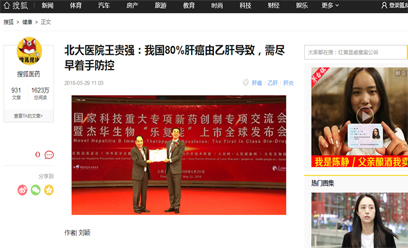 搜狐健康:北大医院王贵强:我国80%肝癌由乙肝导致,需尽早着手防控